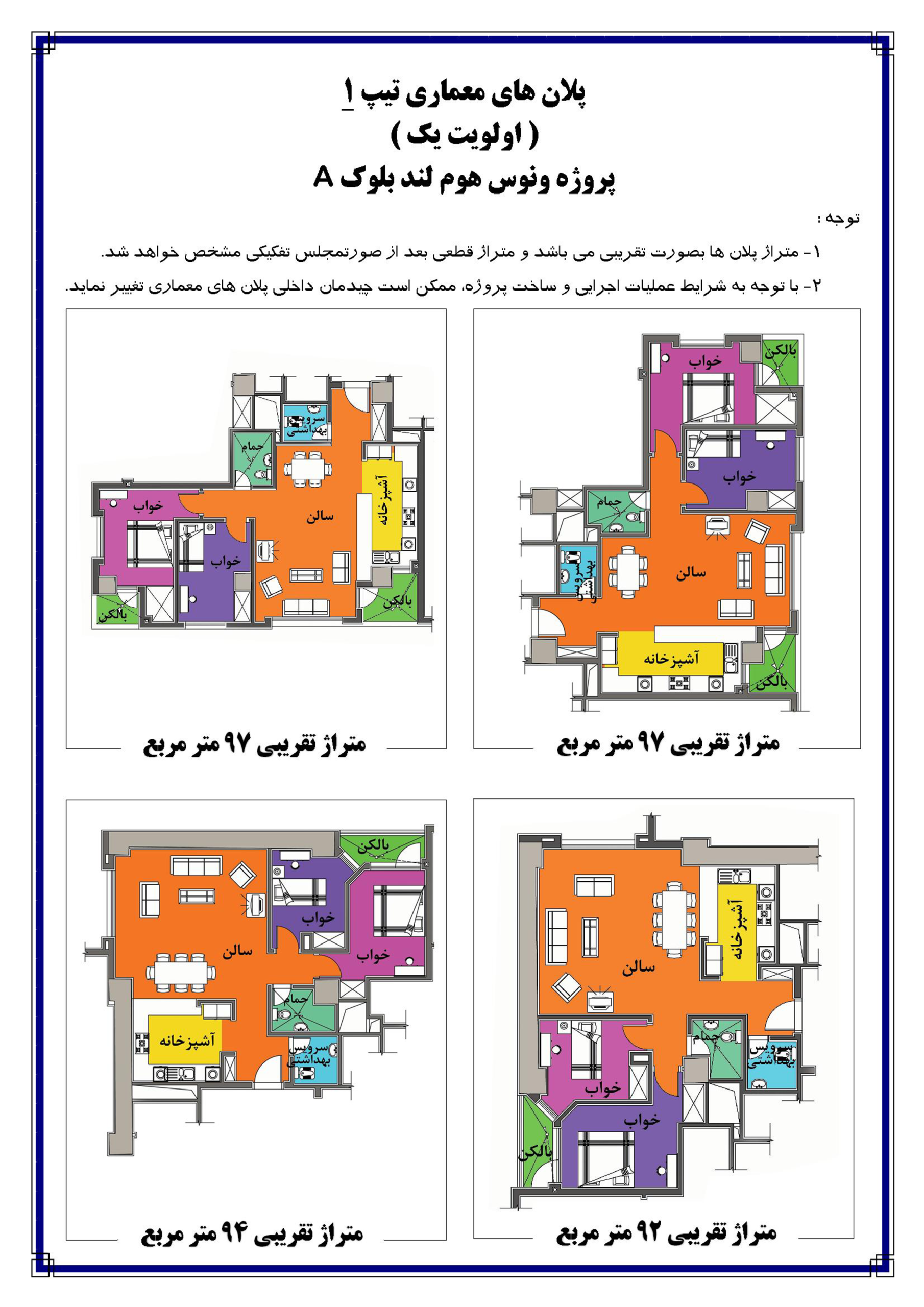 ۱- پلان های تیپ ۱ بلوک A