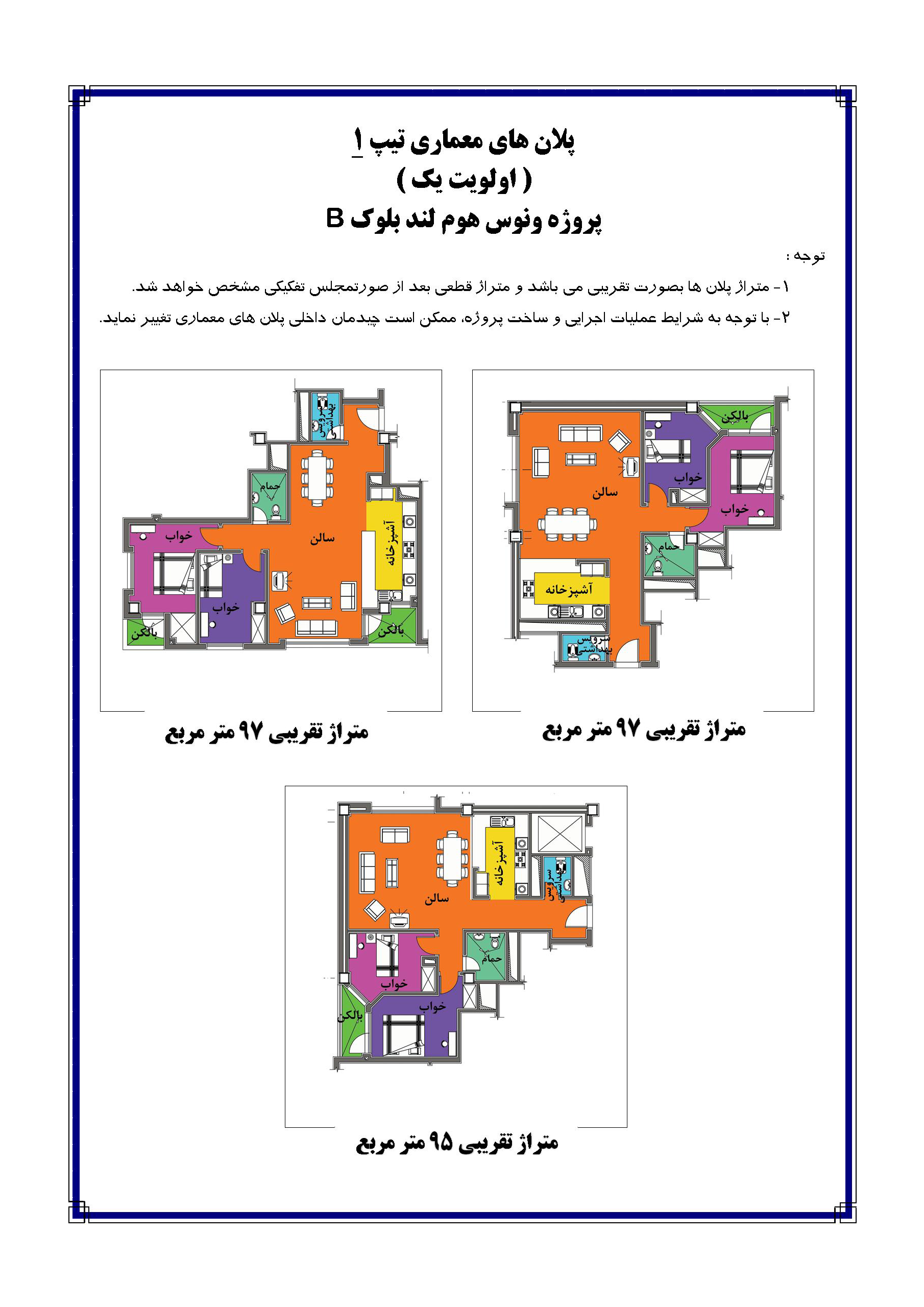 جهت مشاهده پلان های معماری و متراژ آپارتمان در هریک از بلوک های A-B میتوانید به هریک از لینک های ذیل مراجعه نمایید.