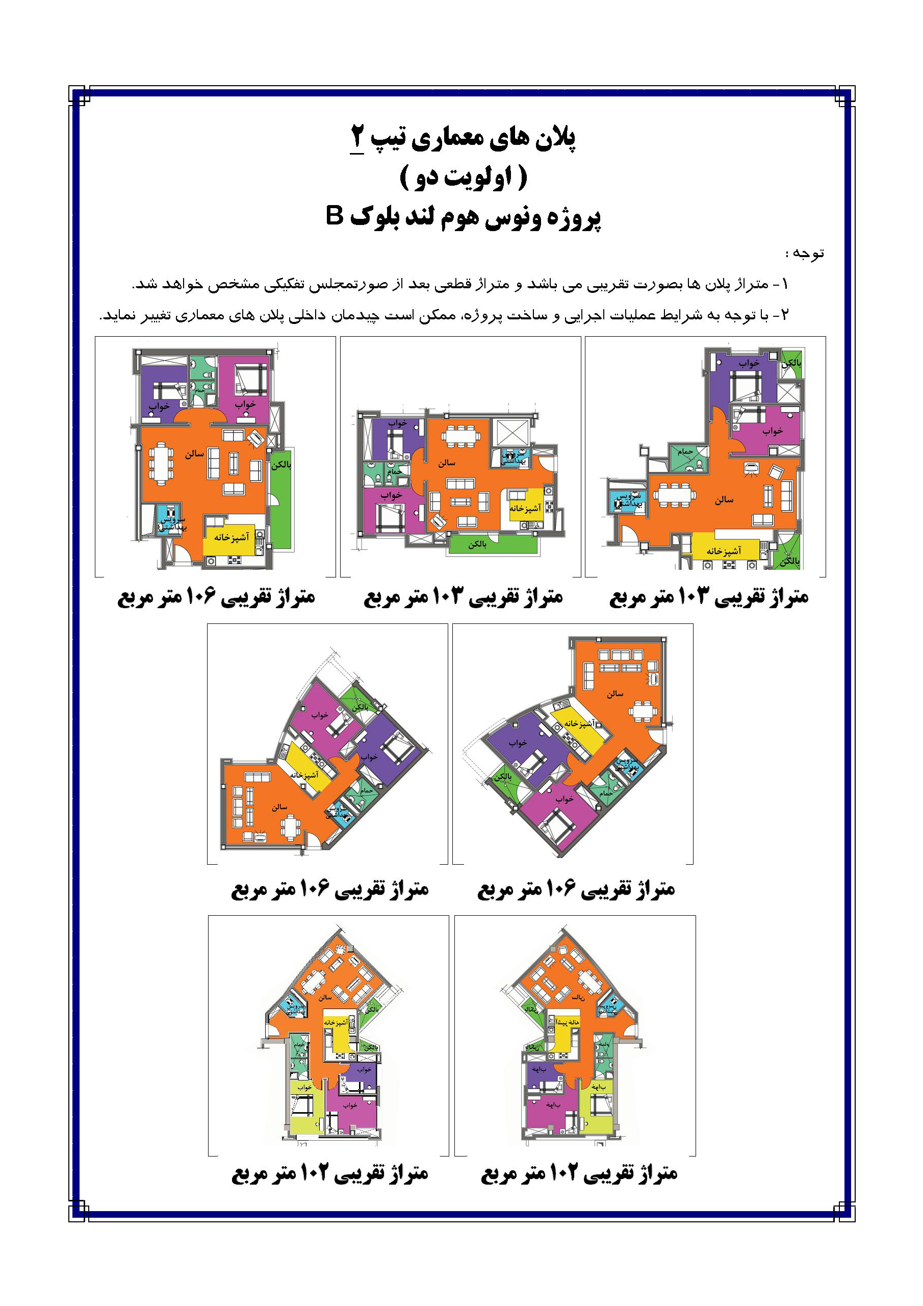 ۵-پلان های تیپ ۲ بلوک B